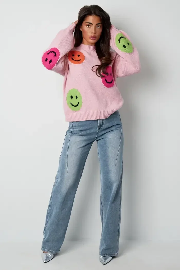 - hier word je toch blij van vrolijke trui met smileys