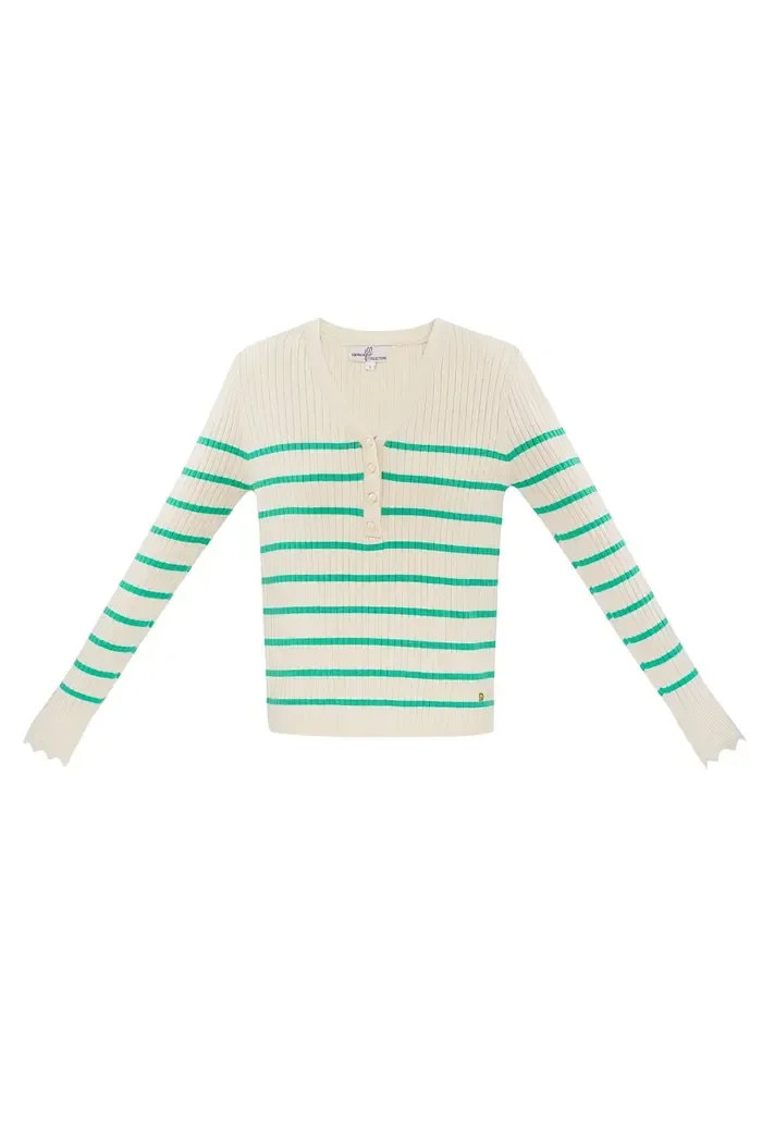 Hoe leuk is deze gestreepte trui met v-hals ?